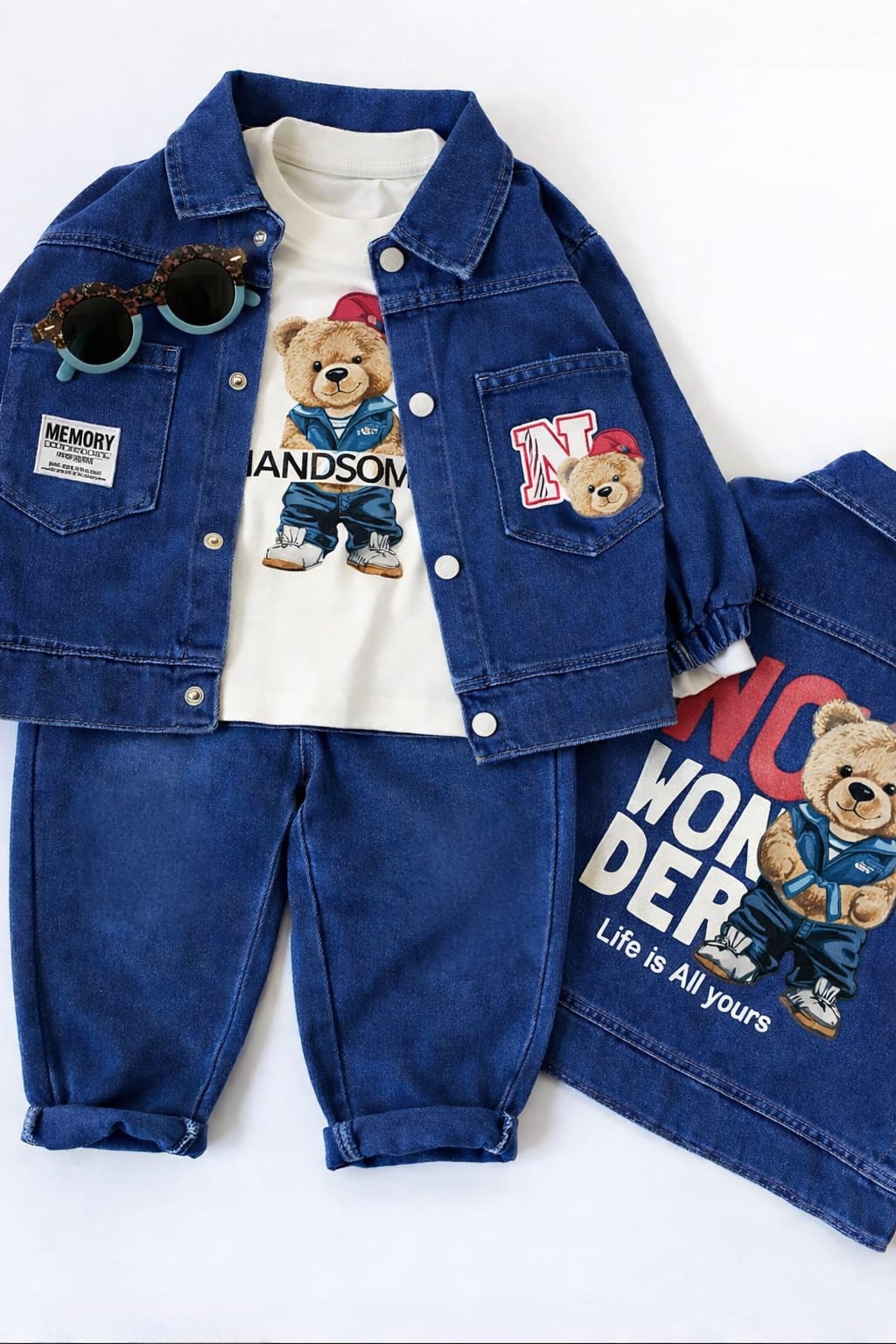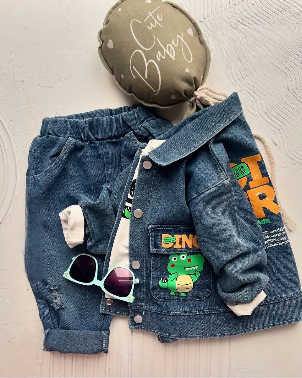 طقم جاكيت جينز مبطن سن 2 الي 8 سنين