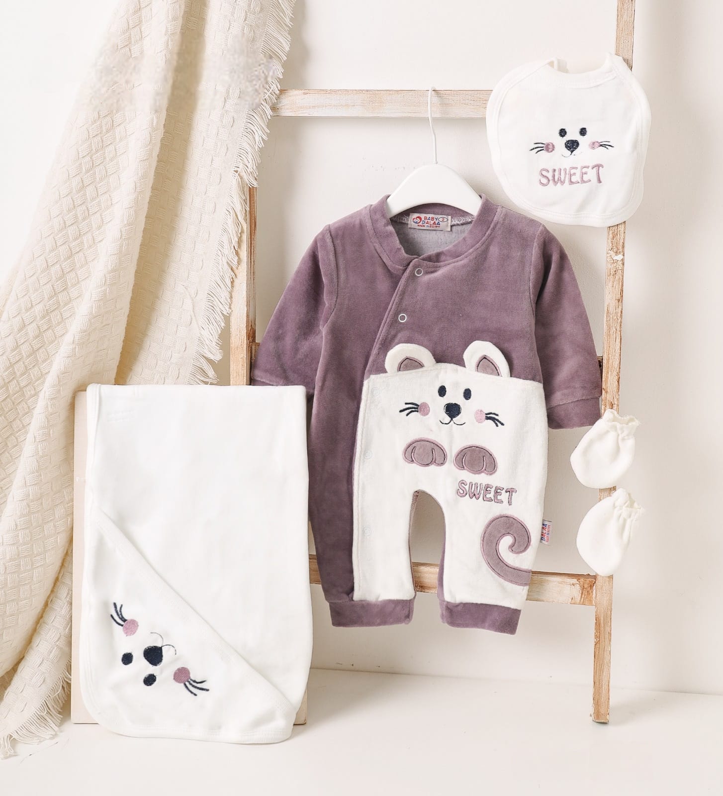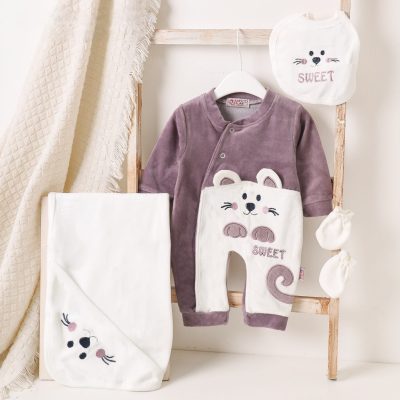 طقم سولوبيت أطفال أنيق مكون من 4 قطعة سلوبيت أنيق + بافتة + كوفرتة + كالوك بتصميم عصري وخامة مريحة تناسب الاستخدام اليومي والمناسبات.
